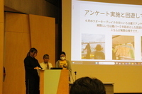 続いては、課題挑戦型インターンシップを行った3グループがそれぞれ成果報告しました。チームD-2は、酒田市様からの「るんるんバスがより便利になる路線改善策」課題に挑戦。課題に取り組むにあたり現状を把握するため、どのバス停をどのような人が利用しているか調査。調査結果を踏まえ、「一部のバス停を集約し、そこから民間のタクシー“のりかえタクシー”という仕組みを構築し活用することで利便性を向上させる」というアイデアを提案しました。また、チームCは、酒田市様からの「いろは蔵パークを起点とした酒田市内の回遊促進策」課題、チームGは株式会社プレステージ・インターナショナル様からの「会社の中庭を開放した地域イベント等の提案」課題に取り組み、それぞれ来訪者へのアンケート調査やイベント実施の場合の費用試算等も加えた解決策の提案を行いました。